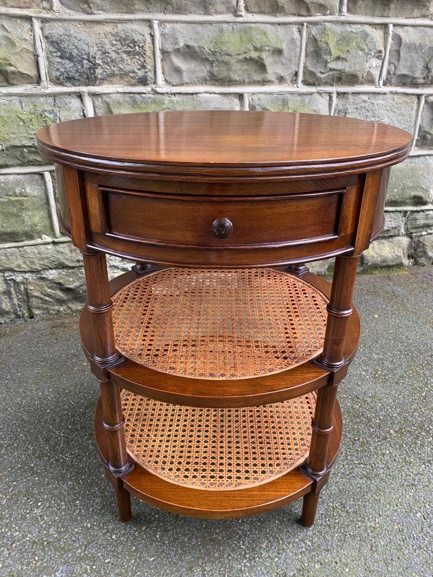 Round Walnut & Bergère Bedside Table