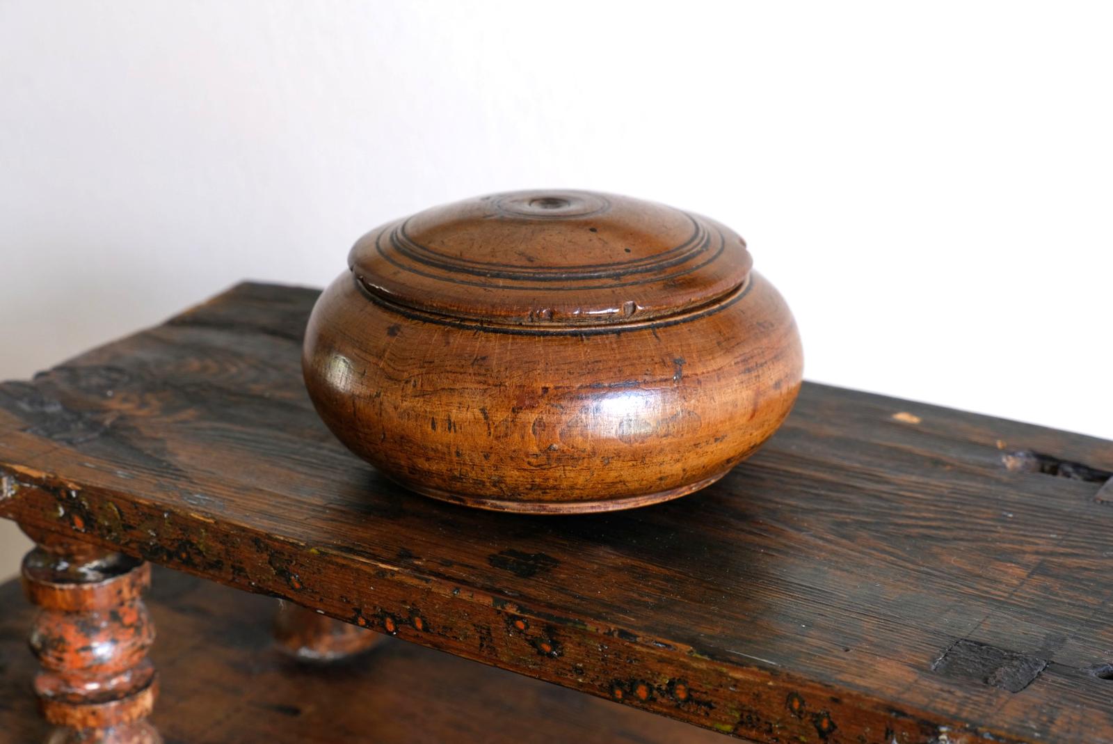 Round Walnut Treen Tobacco Jar