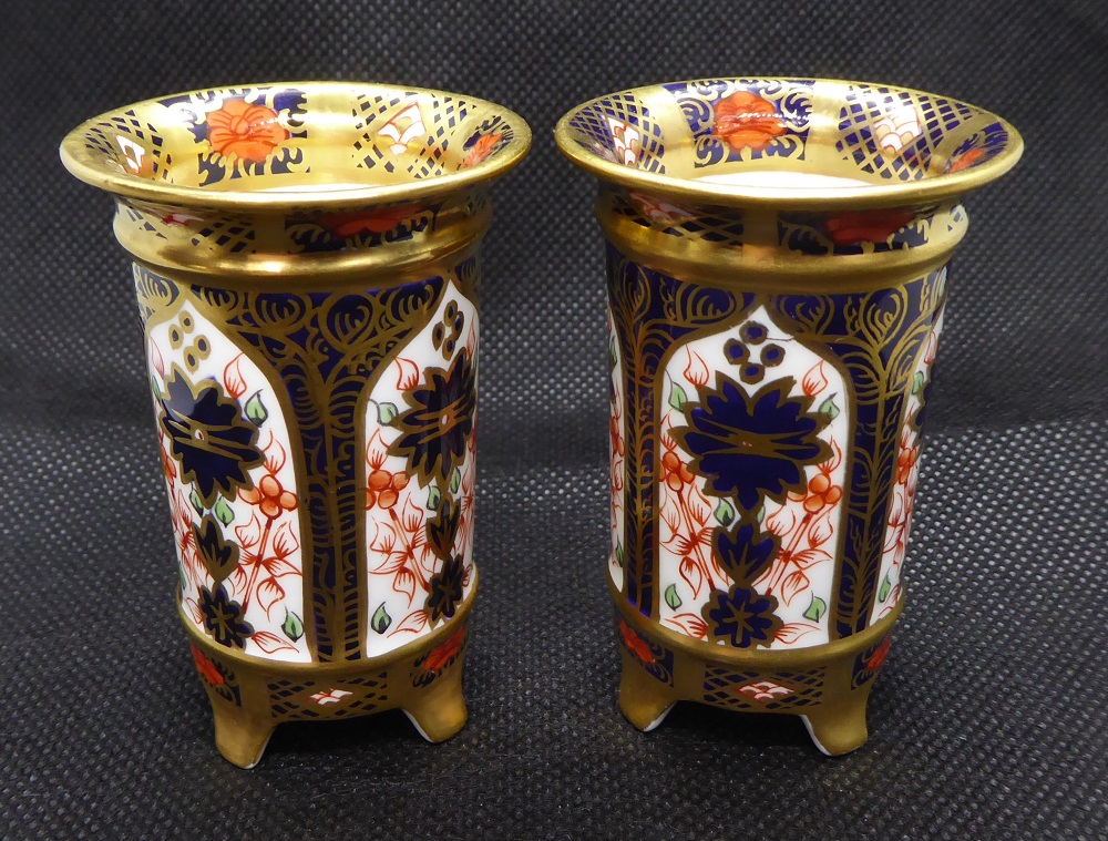 Royal Crown Derby 1128 Pair of Four Footed Miniture Vases 1969
