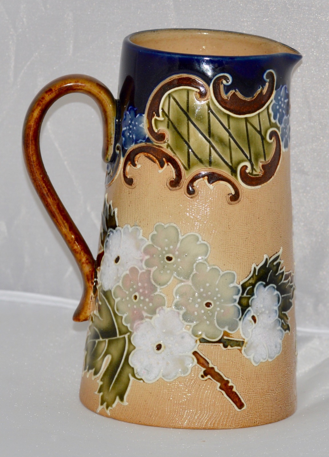 Royal Doulton - Lambeth Stoneware Tall Jug - Slaters Floral Design c.1895