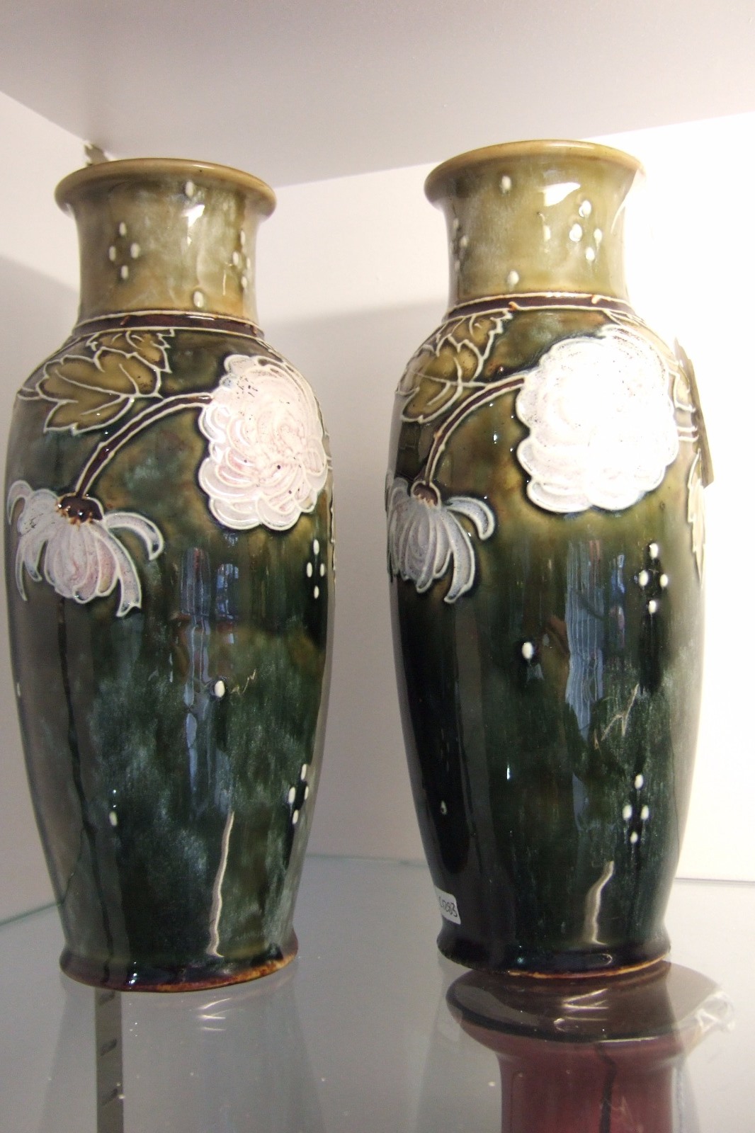 Royal Doulton Pair of Tube Lined Vases with Floral Design (1 of 1)