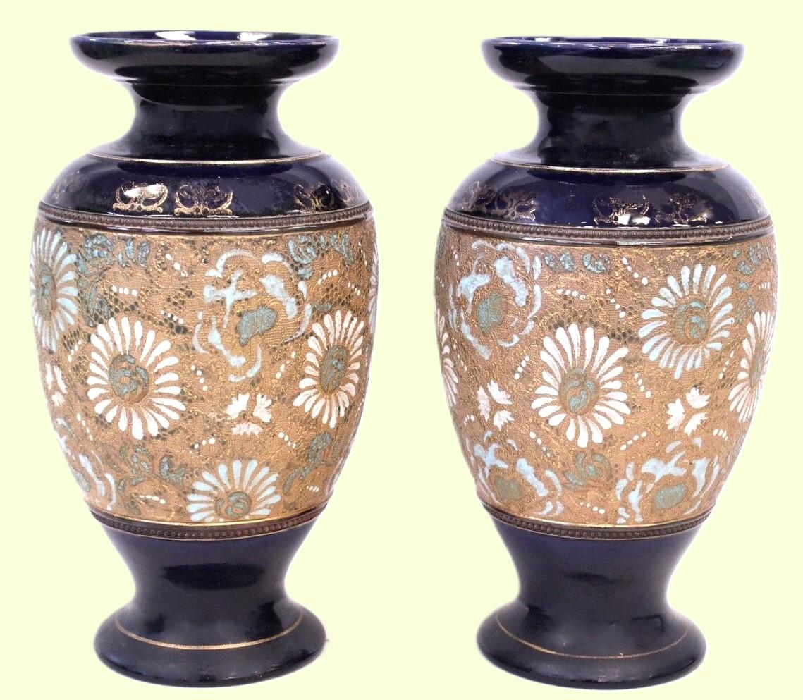 Royal Doulton Vases: Beautiful Matching Pair of Original & Scarce 1892 Doulton & Slaters Patent Lambethware Vases