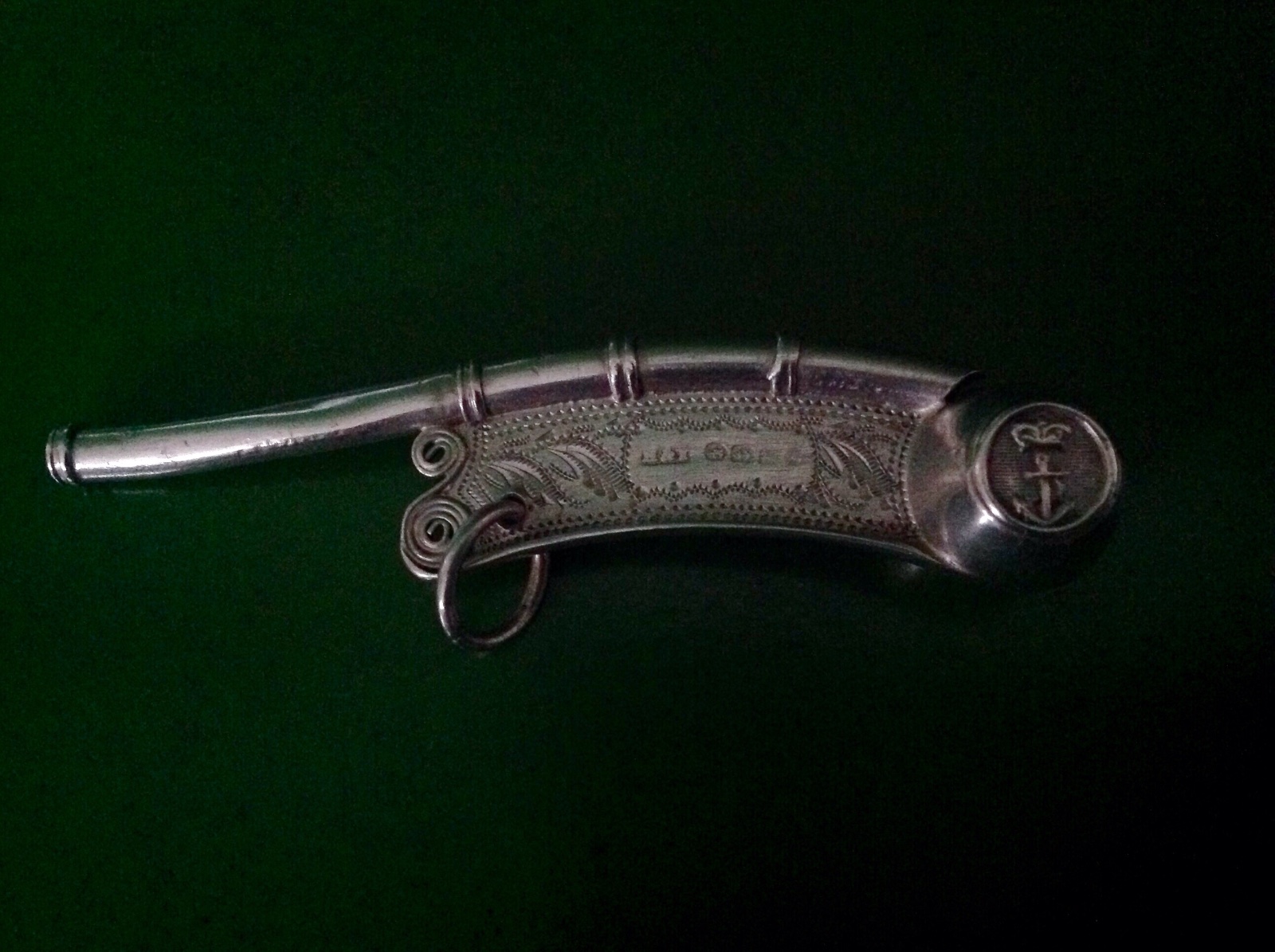 Royal Navy Antique Victorian Silver Bosun's Whistle - 1884