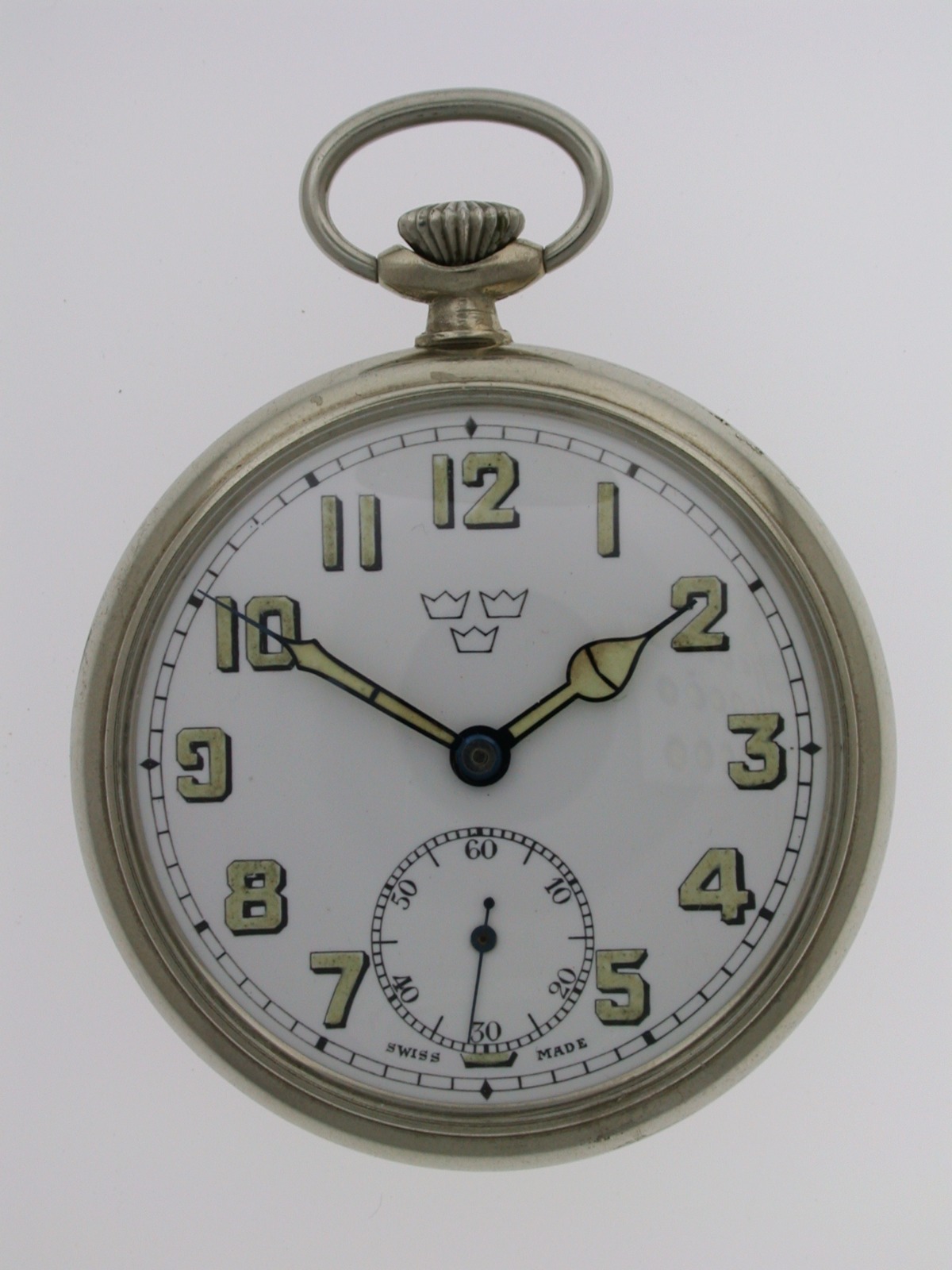 Royal Swedish Military Steel Open Face  Pocket Watch Swiss Made 1940 (1 of 1)