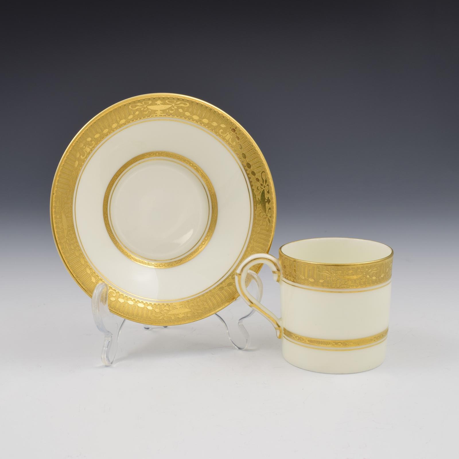 Royal Worcester Art Deco Porcelain Miniature Tooled Gilt Coffee Can & Saucer