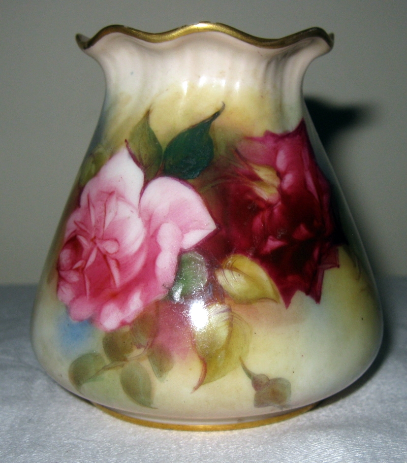 Royal Worcester Frilled Neck Vase Hand-Painted with Roses c.1920