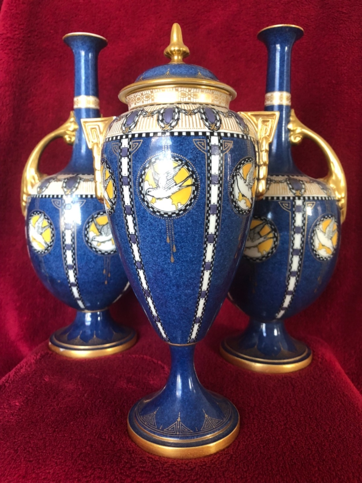 Royal Worcester Garniture Set of 3 Vases in Neo Classical Style