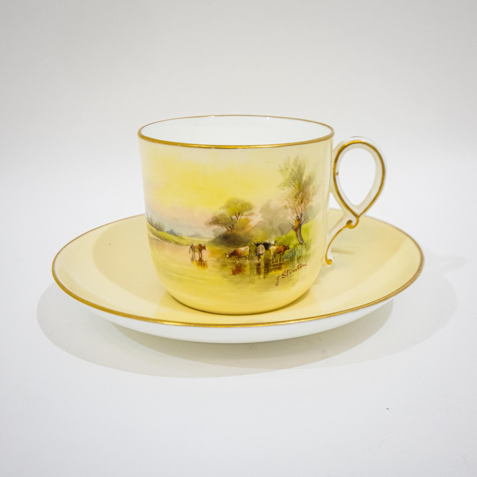 Royal Worcester Grainger Porcelain Cup & Saucer by John Stinton
