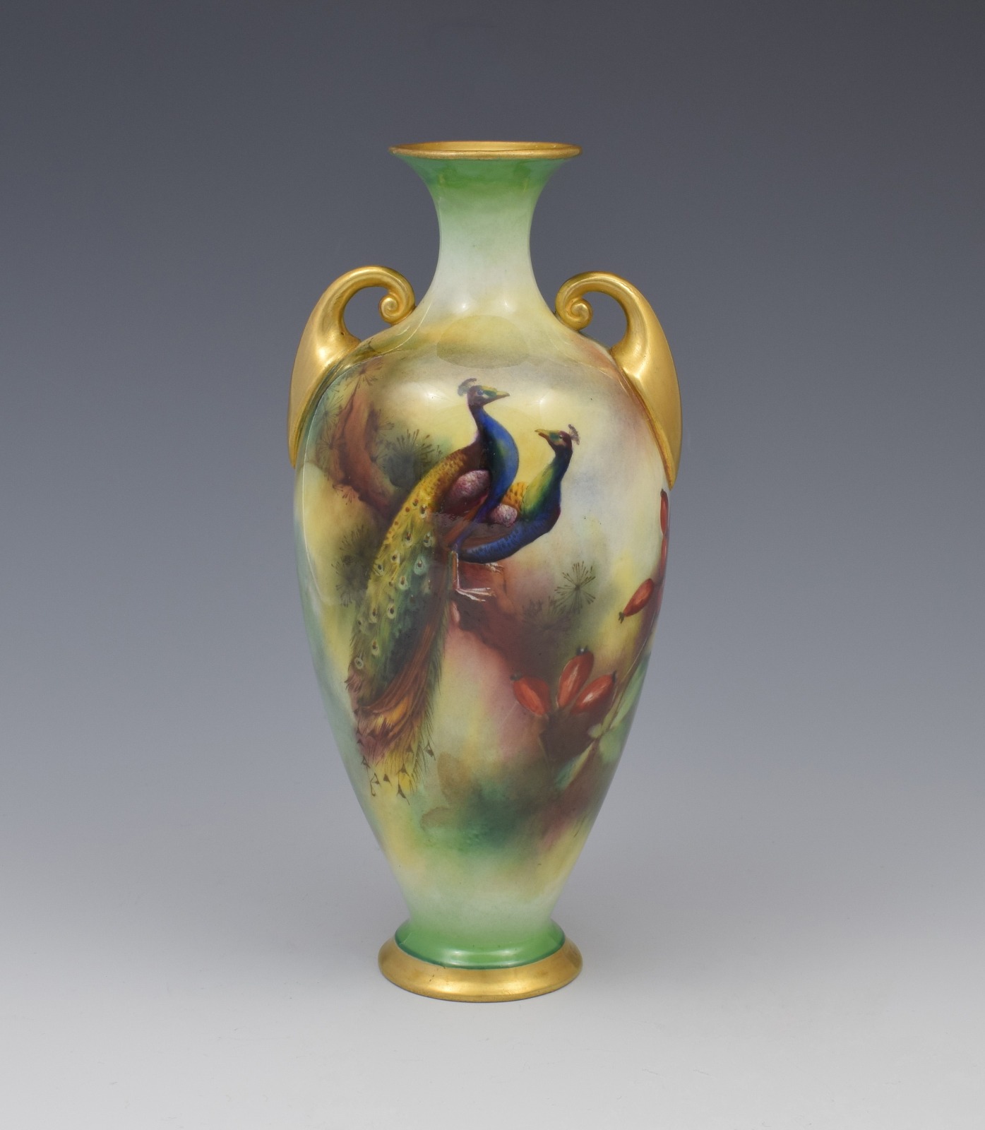 Royal Worcester Hadley Ware Vase Peacocks Henry Martin 1905