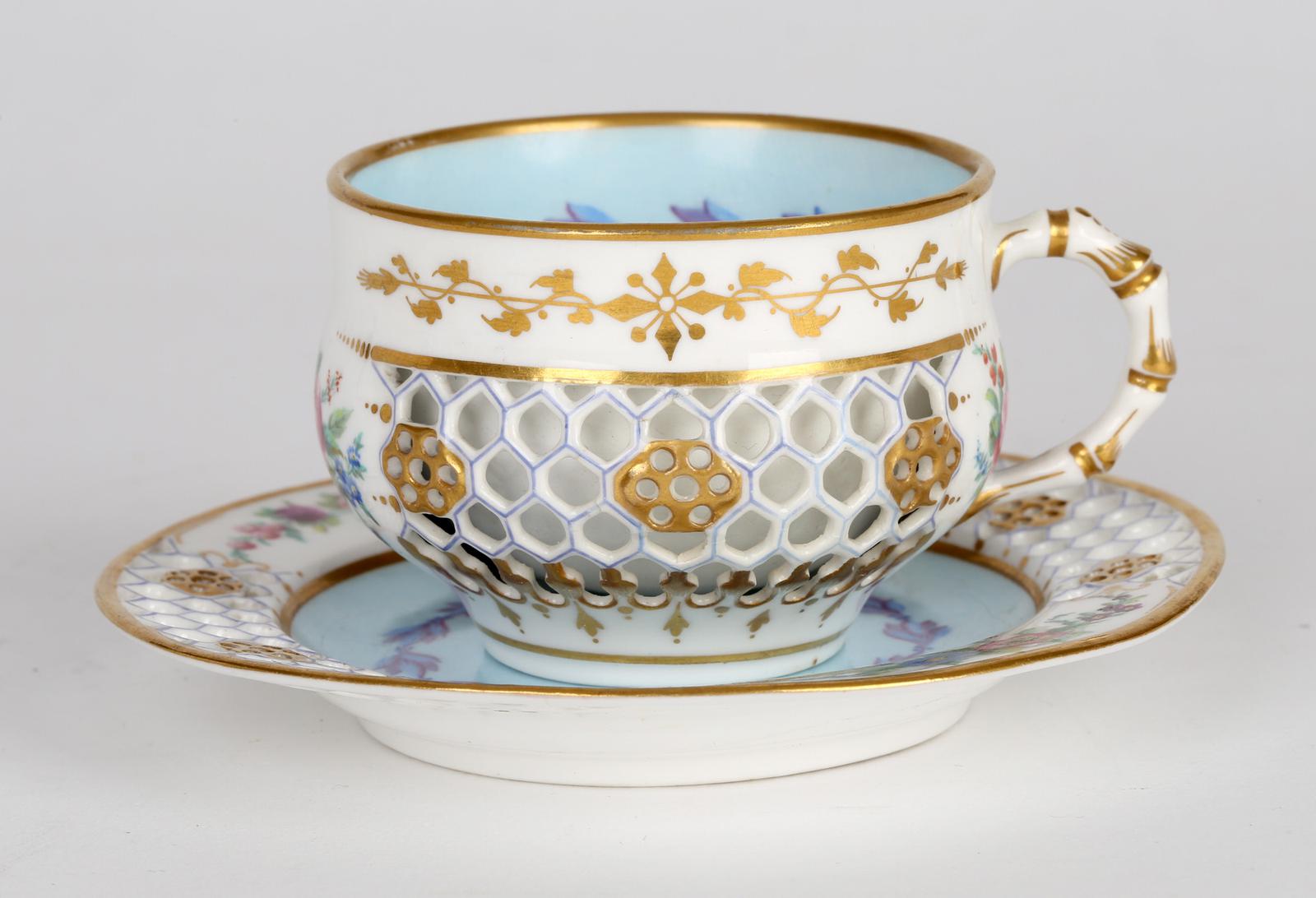 Royal Worcester Rare Reticulated Floral Painted Cabinet Cup & Saucer