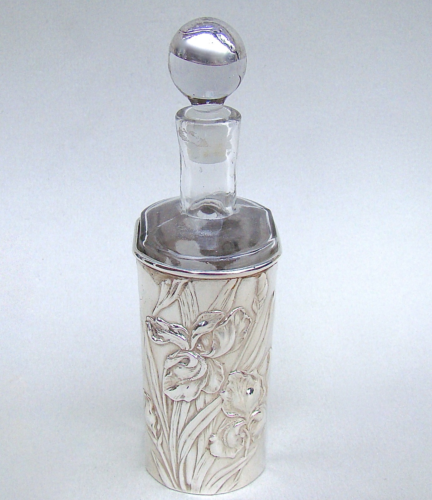 Rt Nouveau Silver & Glass Scent Bottle / Cologne Bottle by Henry Matthews, Birmingham 1903