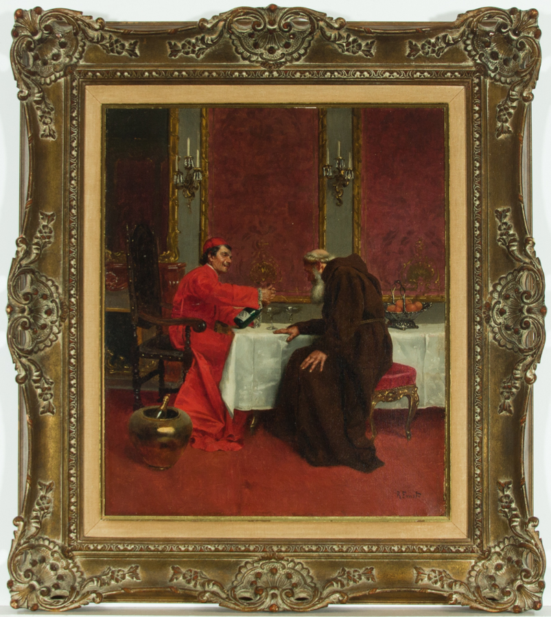 Rudolf Ernst - Signed French-Austrian Oil, Bishop & Monk in An Elegant Interior