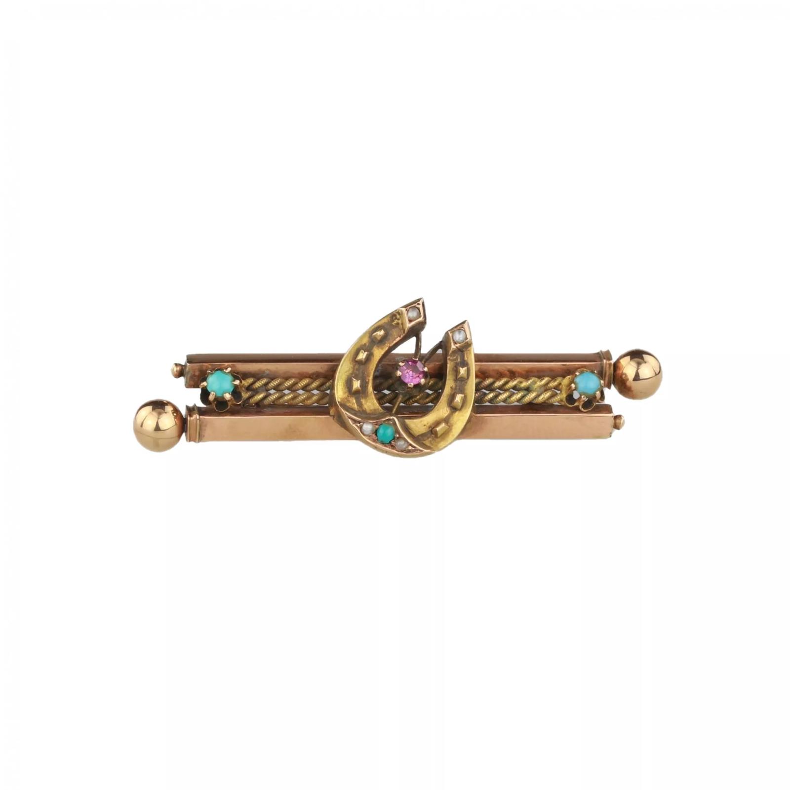 Russian gold brooch Horseshoe. Moscow.1880-1889