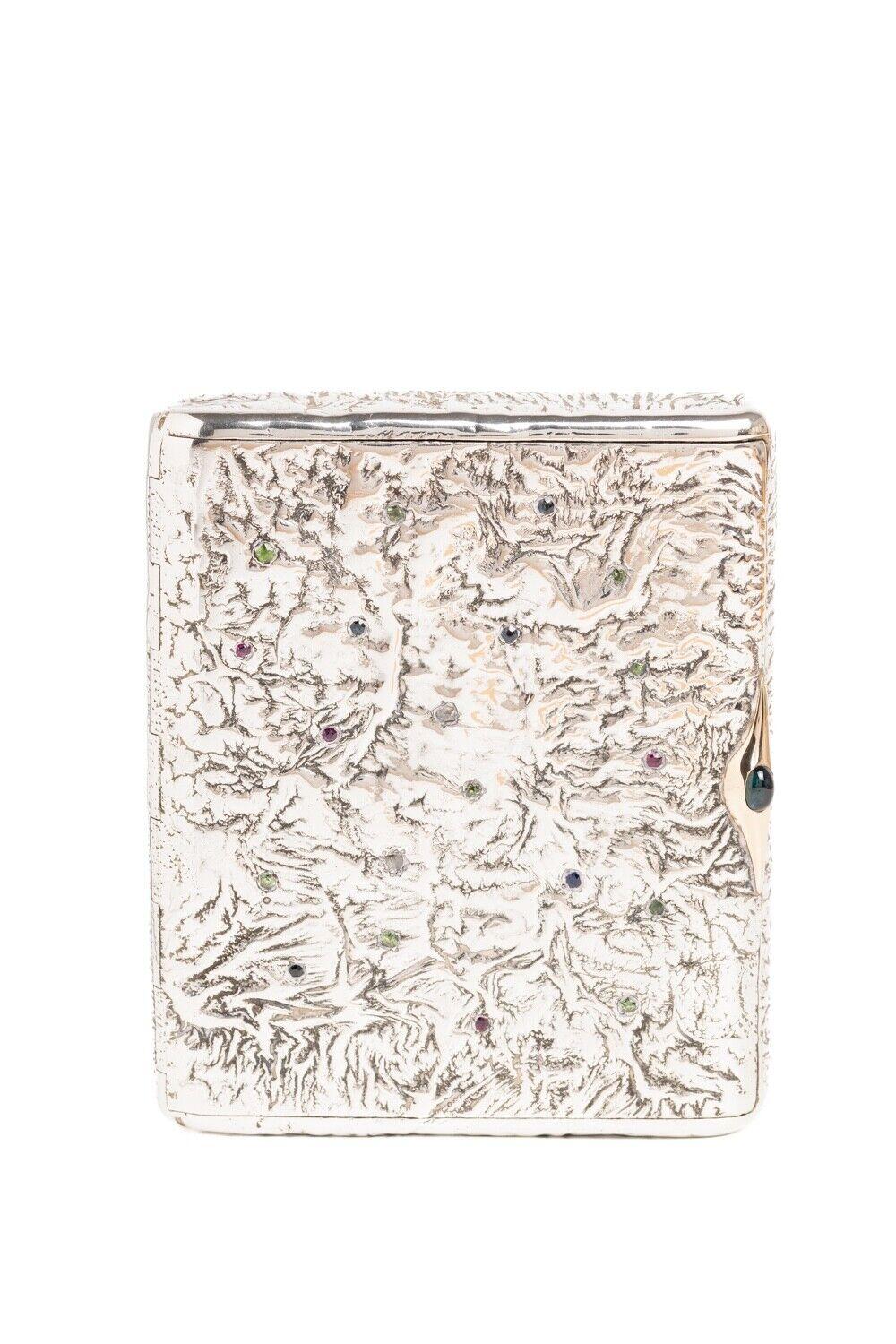 Russian Samorodok Silver Gilt & Gemstone Cigarette Case