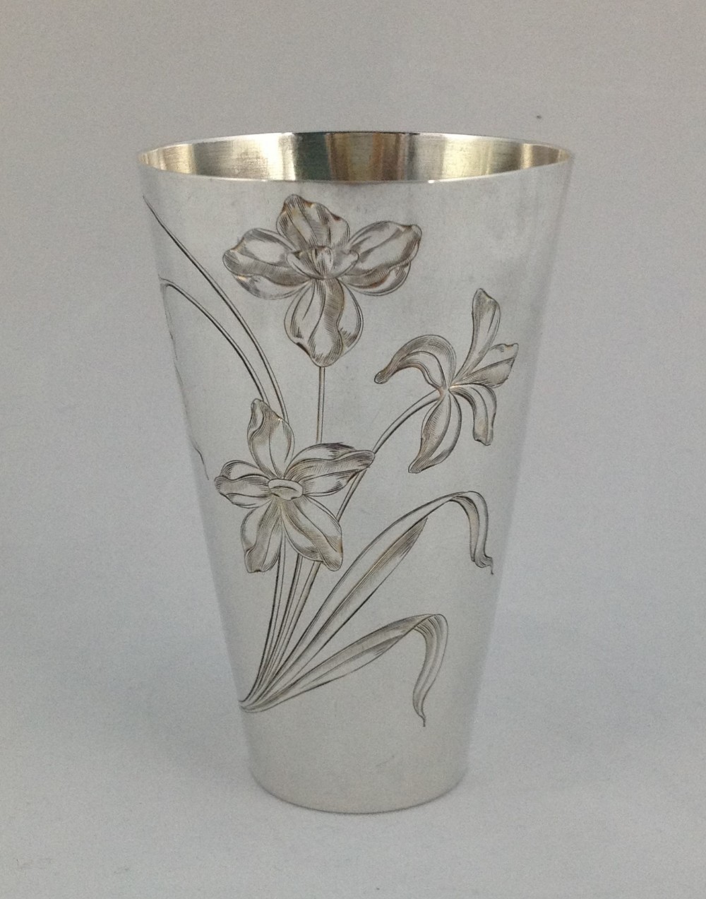 Russian Silver Beaker Art Nouveau Moscow 1899-1908 Maker Al Vodka Kiddush Cup Engraved Flowers