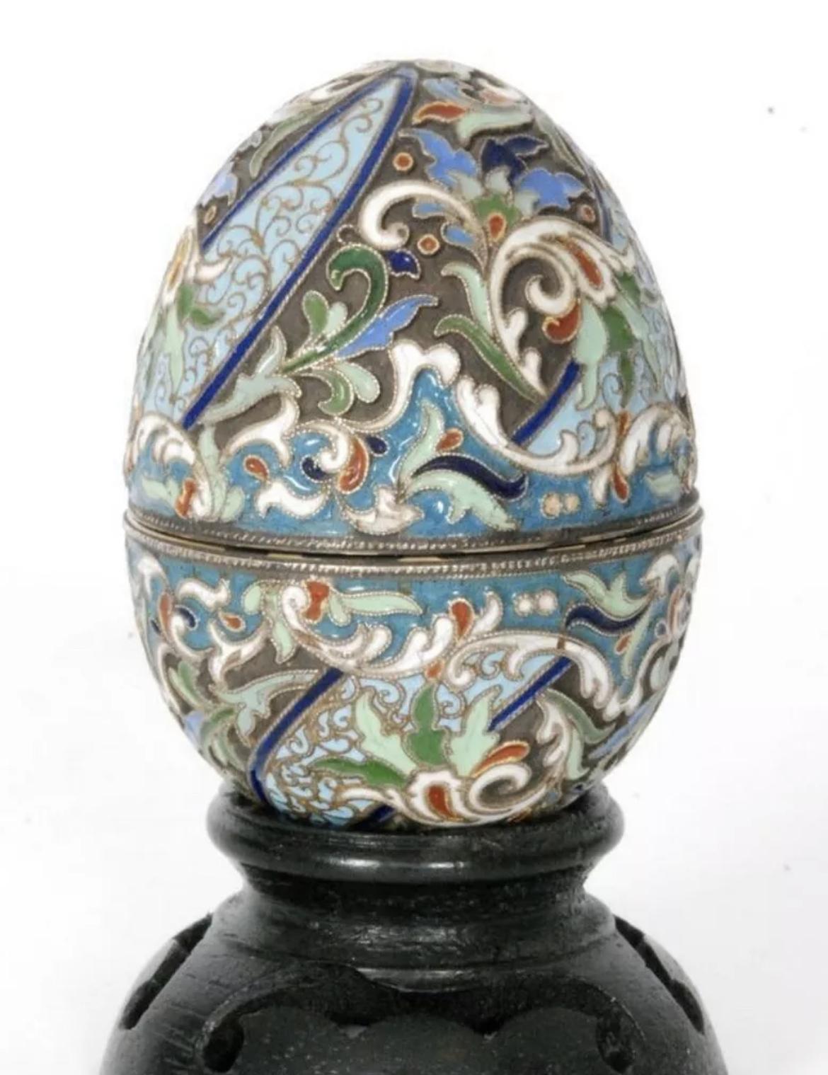 Russian Silver Cloisonné Enamelled Egg by Grigory Sbetnayev, Moscow c.1893
