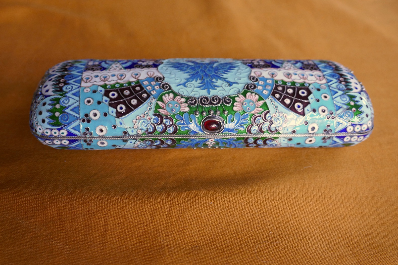 Russian Silver Cloisonné Imperial Eagle Cigar Case