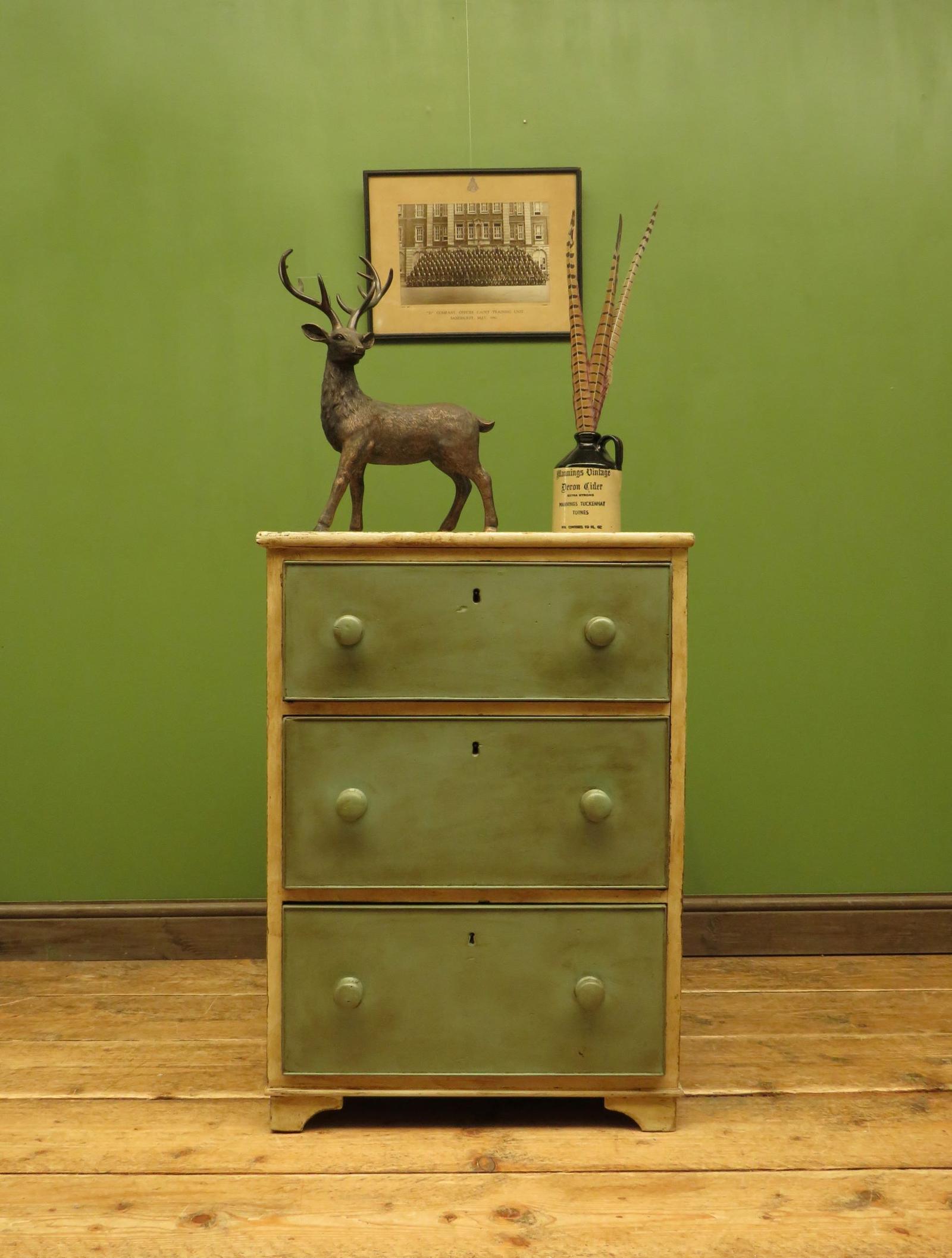 Rustic Antique Painted Chest of Drawers in Blue & Cream