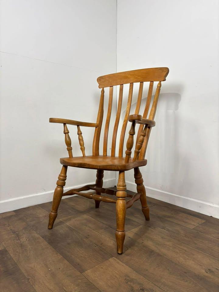 Rustic Beech Slat Back Grandfather Armchair - Country Style