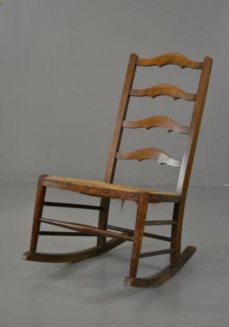 Rustic Country Ladderback Rush Rocking Chair C.1920