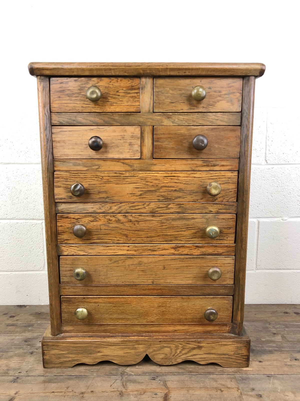 Rustic Oak Bank of Drawers with Brass Knobs