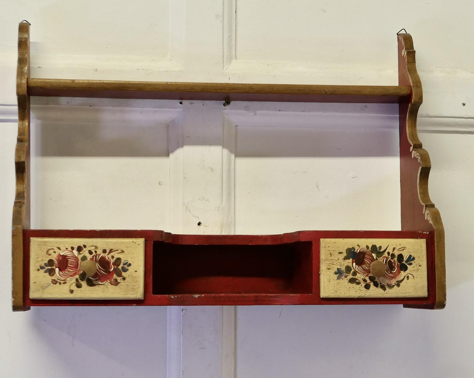 Rustic Painted Folk Art Wall Shelf with Drawers