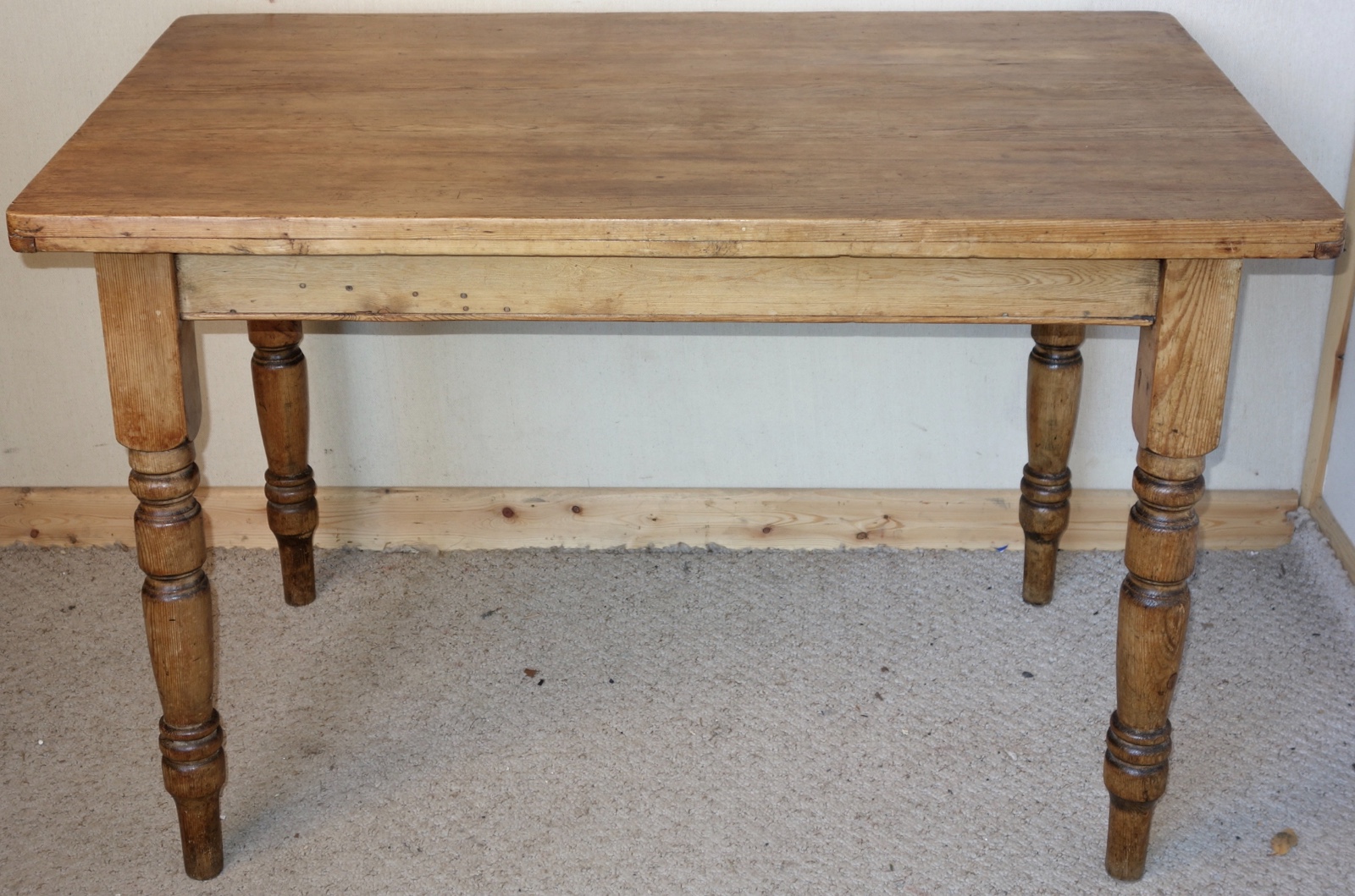 Rustic Pine Kitchen Table with Drawer c.1920 (1 of 1)