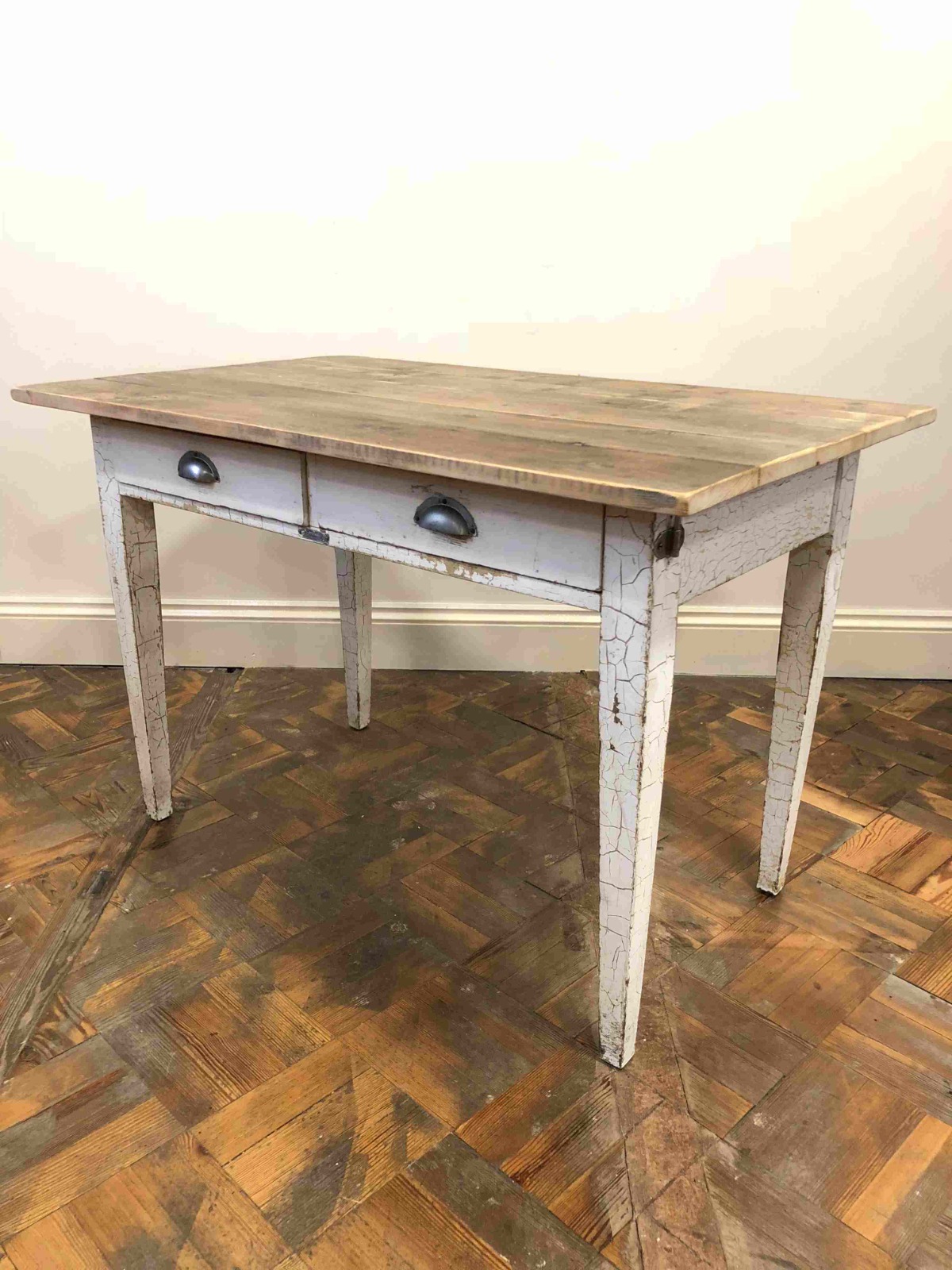 Rustic Wooden Two Drawer Kitchen Table with Painted Base (1 of 1)