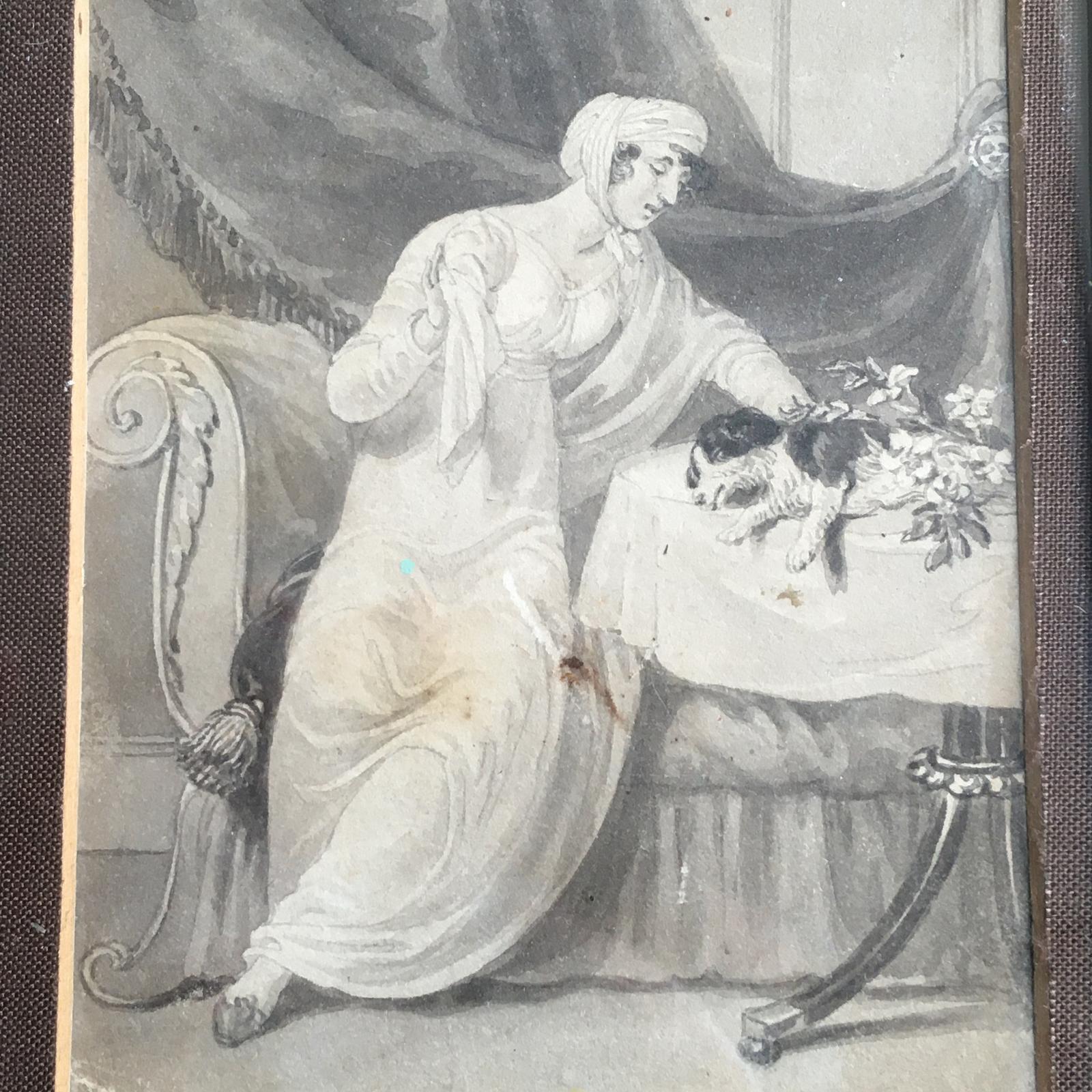 Sad But Beautiful Little Painting of a Woman Mourning the Passing of Her Beloved Spaniel
