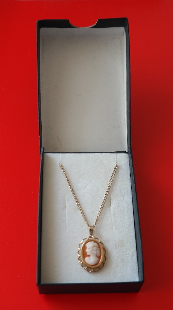 Sale - Pretty Vintage 9ct Yellow Gold Cameo Pendant & Chain - Boxed / Ideal Gift / Present