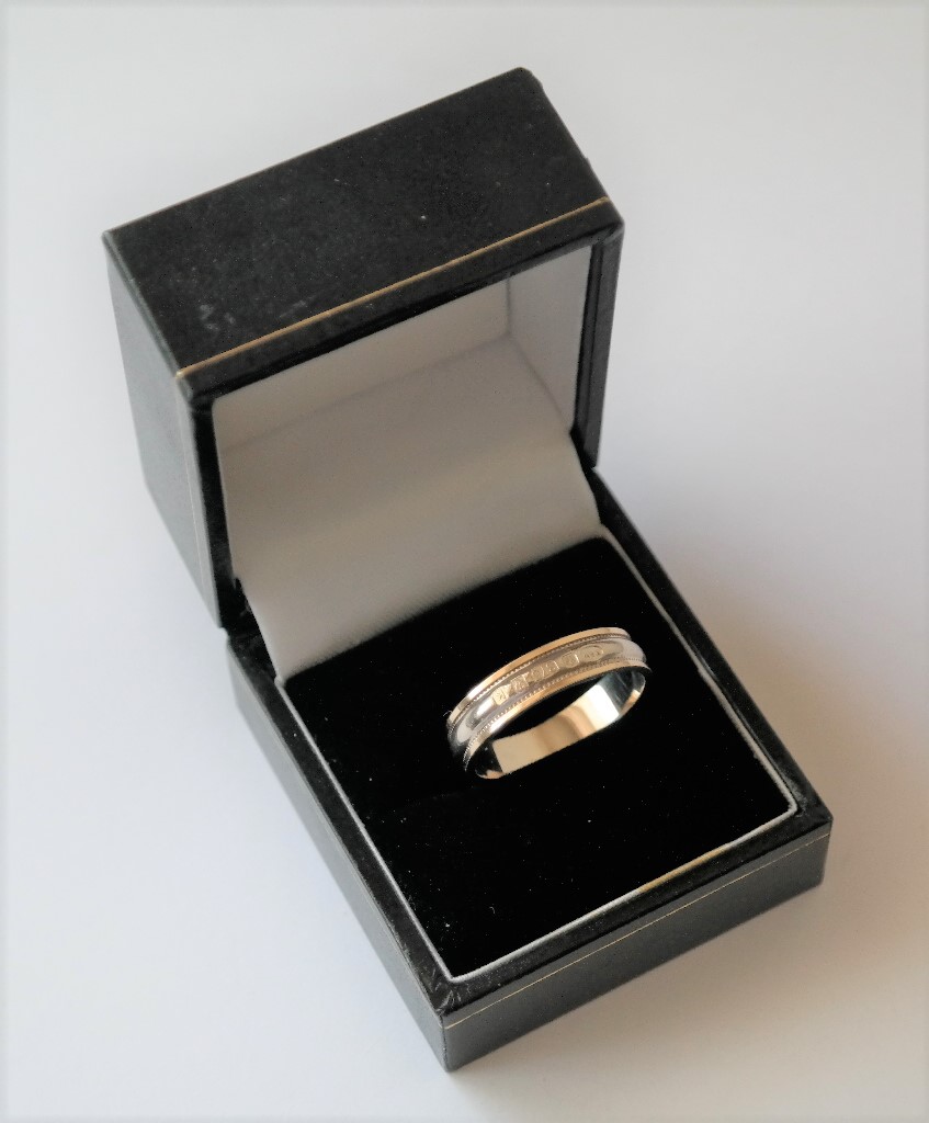 Sale - Vintage Used 14ct Yellow & 9ct White Gold Wedding Band - Boxed / Ideal Gift