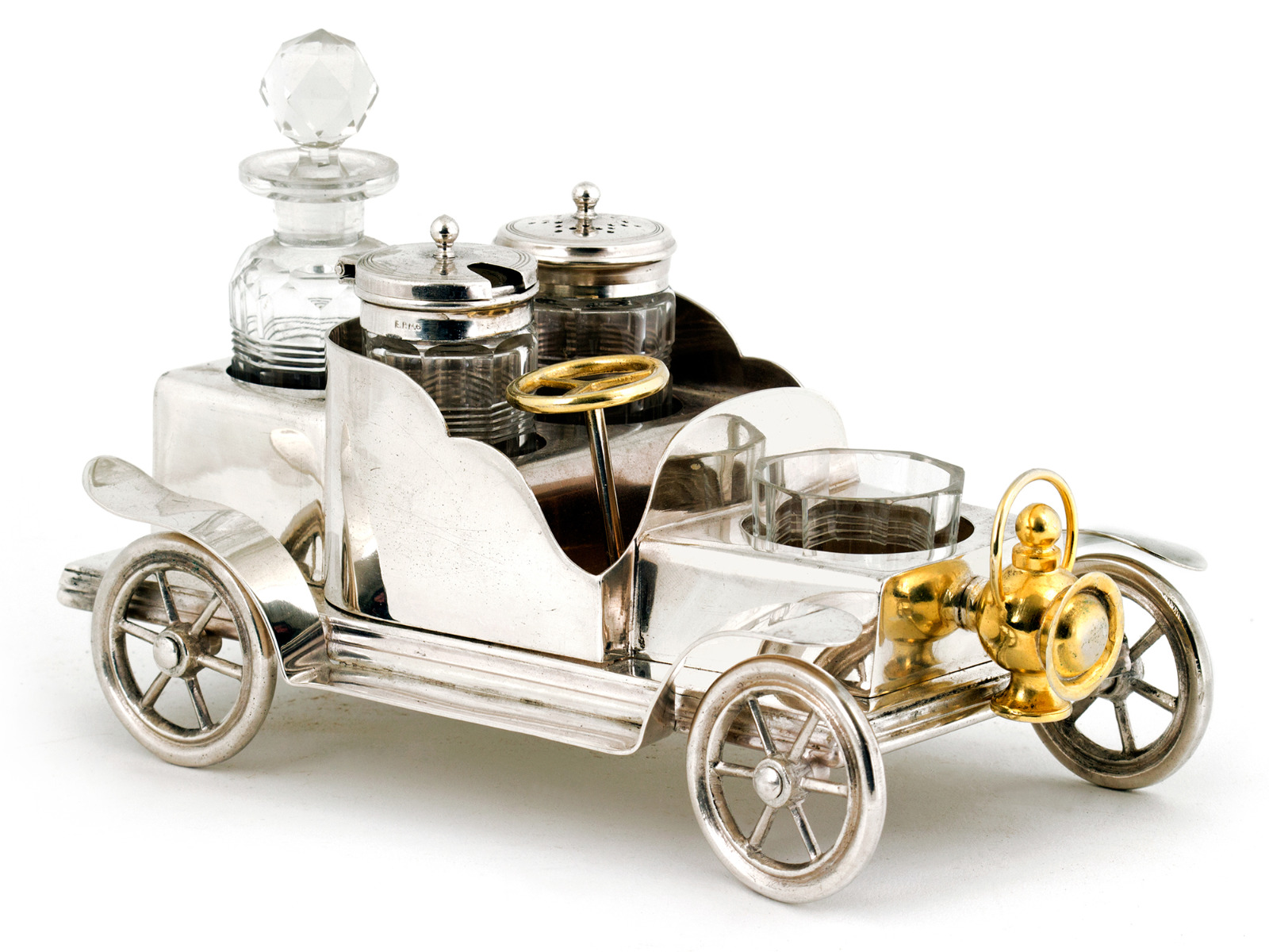 Sampson Mordan & Co Silver Plate Car Cruet Set c.1890