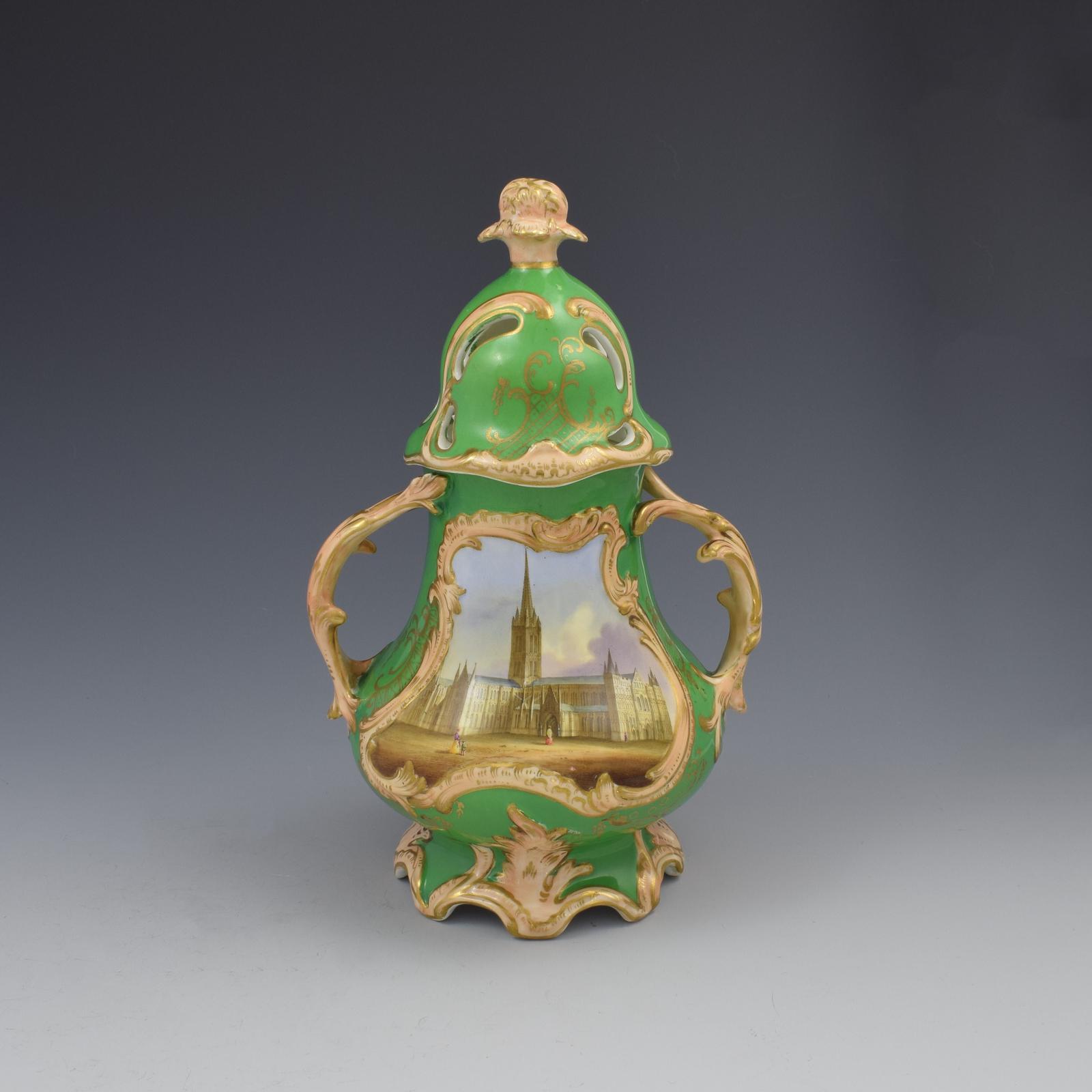 Samuel Alcock Porcelain Pot Pourri Vase & Cover View Salisbury Cathedral (1 of 12)