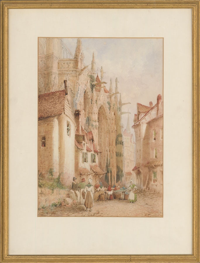 Samuel Gillespie Prout - Framed Watercolour, Market Day at Antwerp