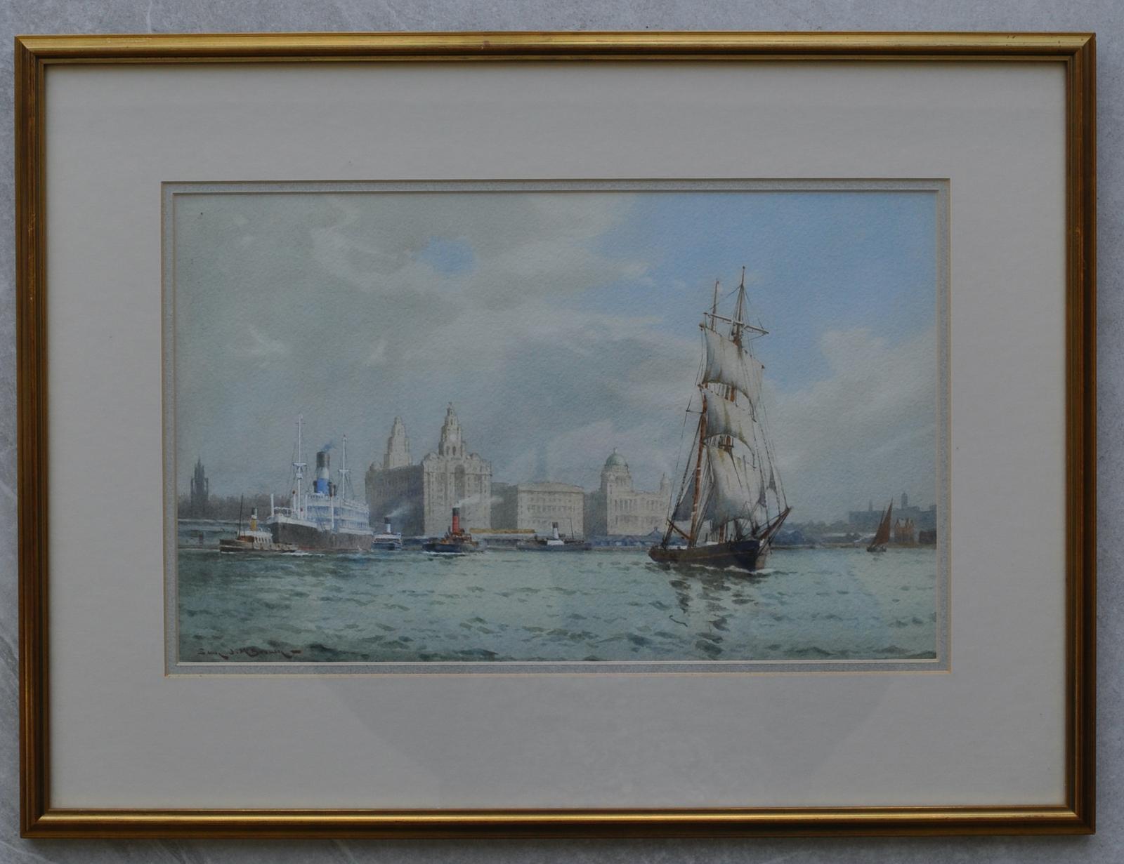 Samuel John Milton Brown 1873-1965, Lamport and Holt Cargo Ship & Other Vessels in Front of the Liverpool Waterfront