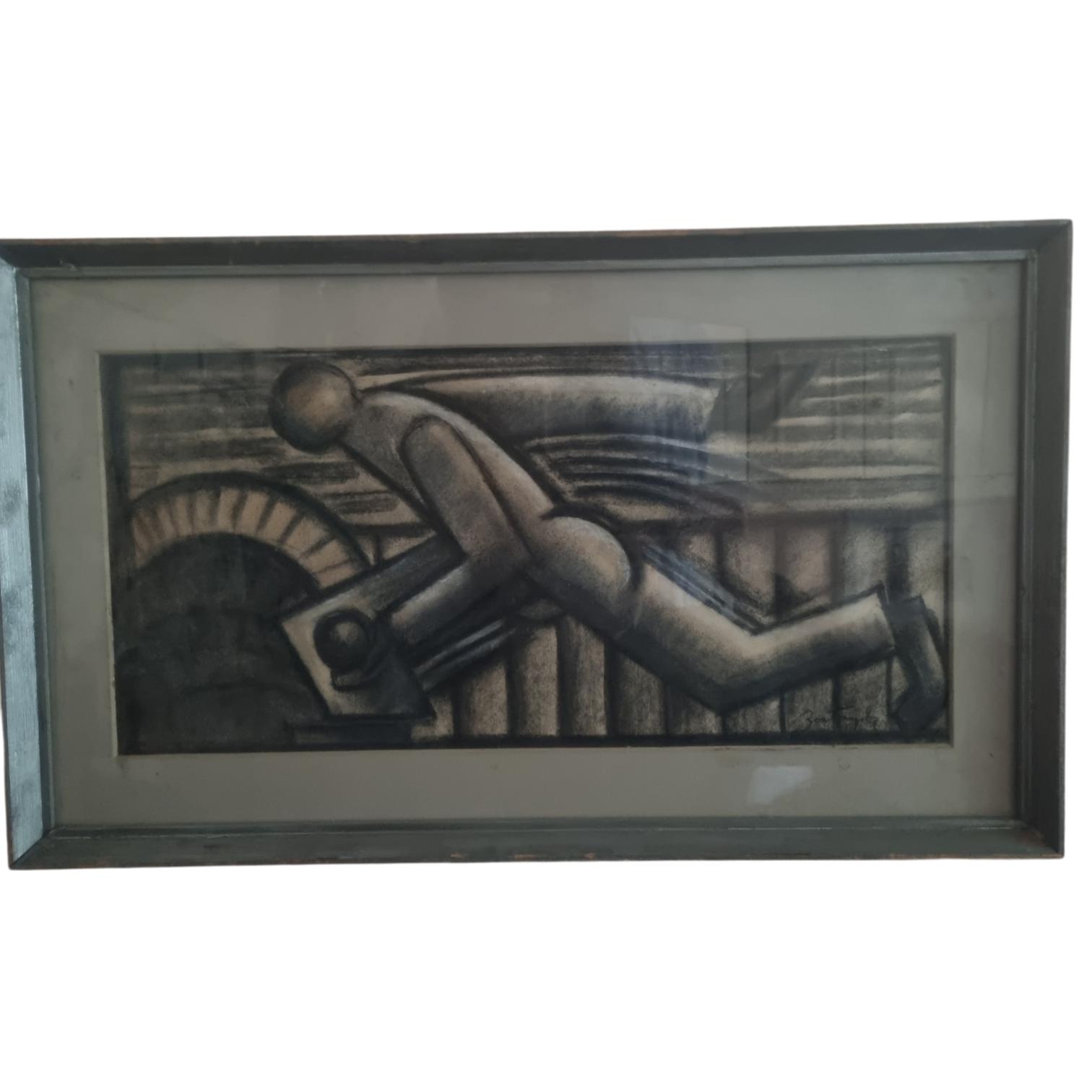 Sandor Bortnyik Signed Art Painting Constructivist Abstract Figure - Mixed Media Modernist Art - Cubism Expressionism