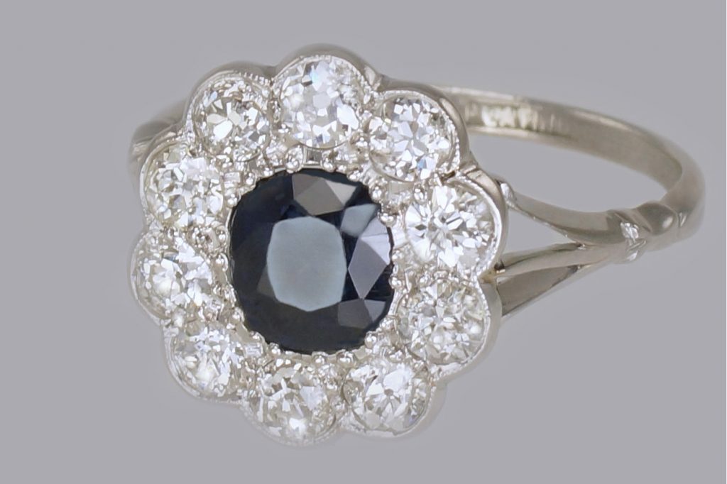 Sapphire & 1.50ct Old Cut Diamond Platinum Cluster Ring (1 of 18)