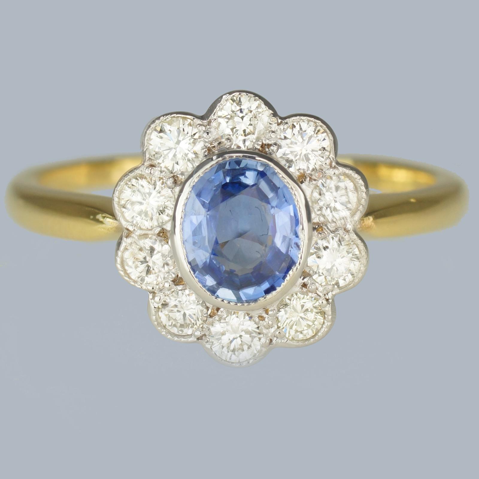 Sapphire & Diamond Cluster Ring Vintage 18ct Gold 1960s Victorian Style Ring