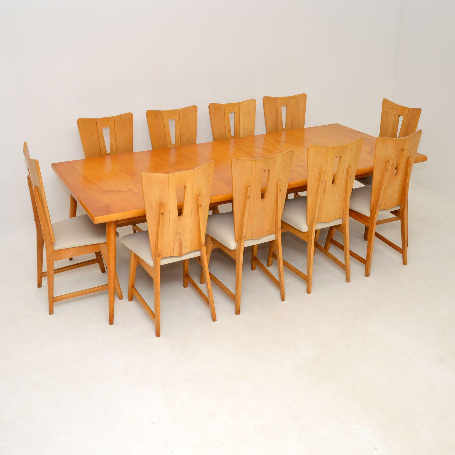 Satin Birch Dining Table & 10 Chairs Vintage 1950’s