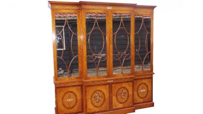 SATIN WOOD SHERATON DESIGN BREAKFRONT BOOKCASE