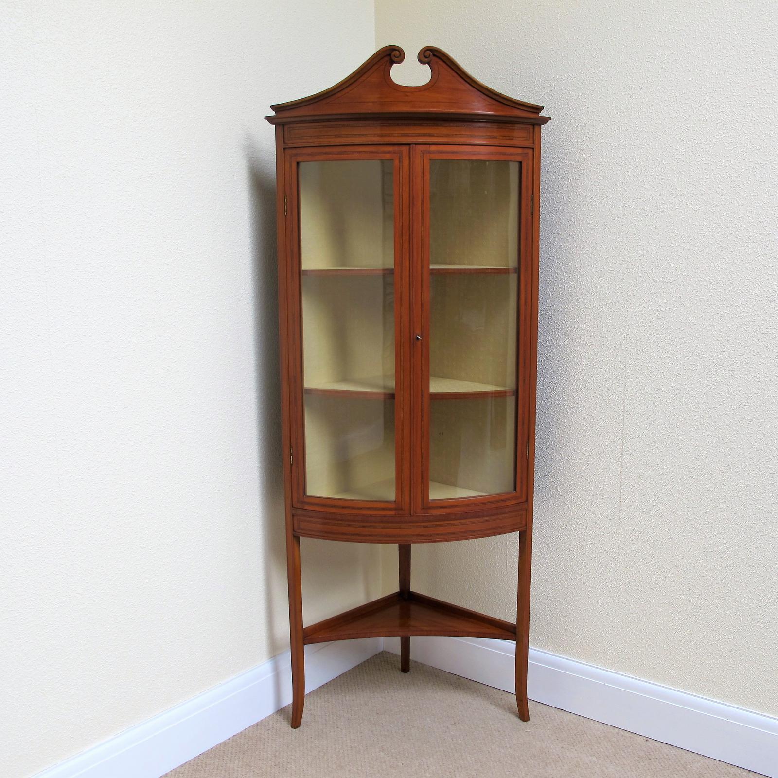Satinwood Bow Fronted Corner Display Cabinet (1 of 7)