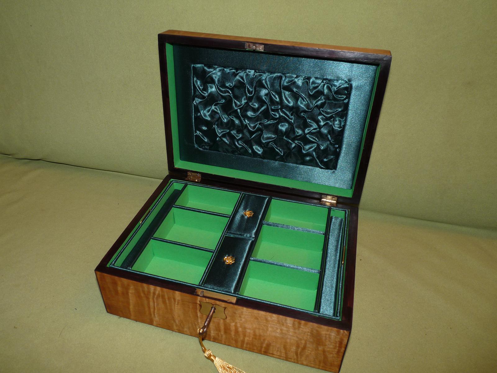 Satinwood & Mahogany Jewellery Box. Plush Interior. c1860.