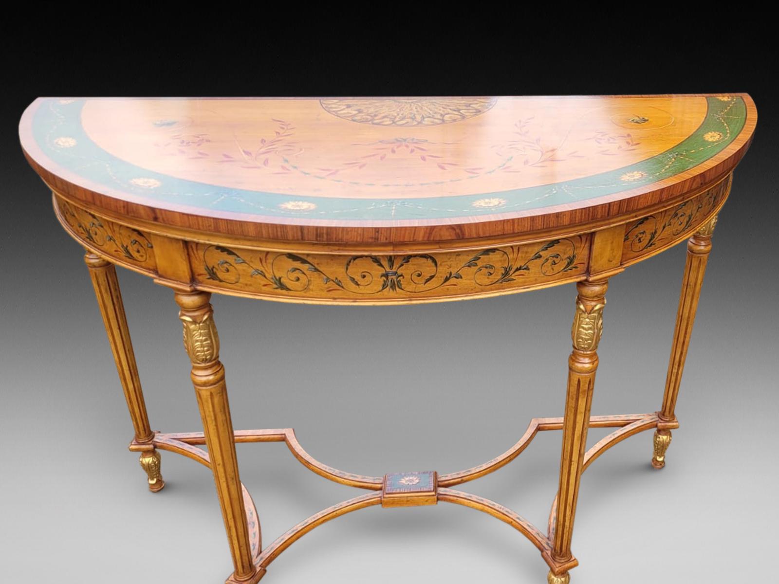 Satinwood Veneered Demi-lune Console Table (1 of 5)