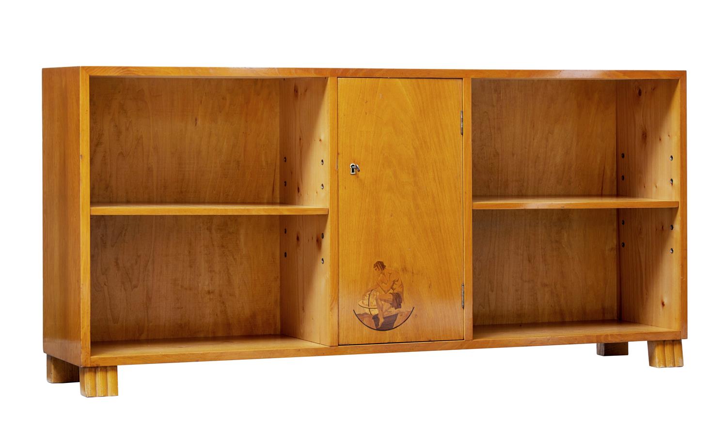 Scandinavian Inlaid Elm Low Bookcase c.1930 (1 of 1)