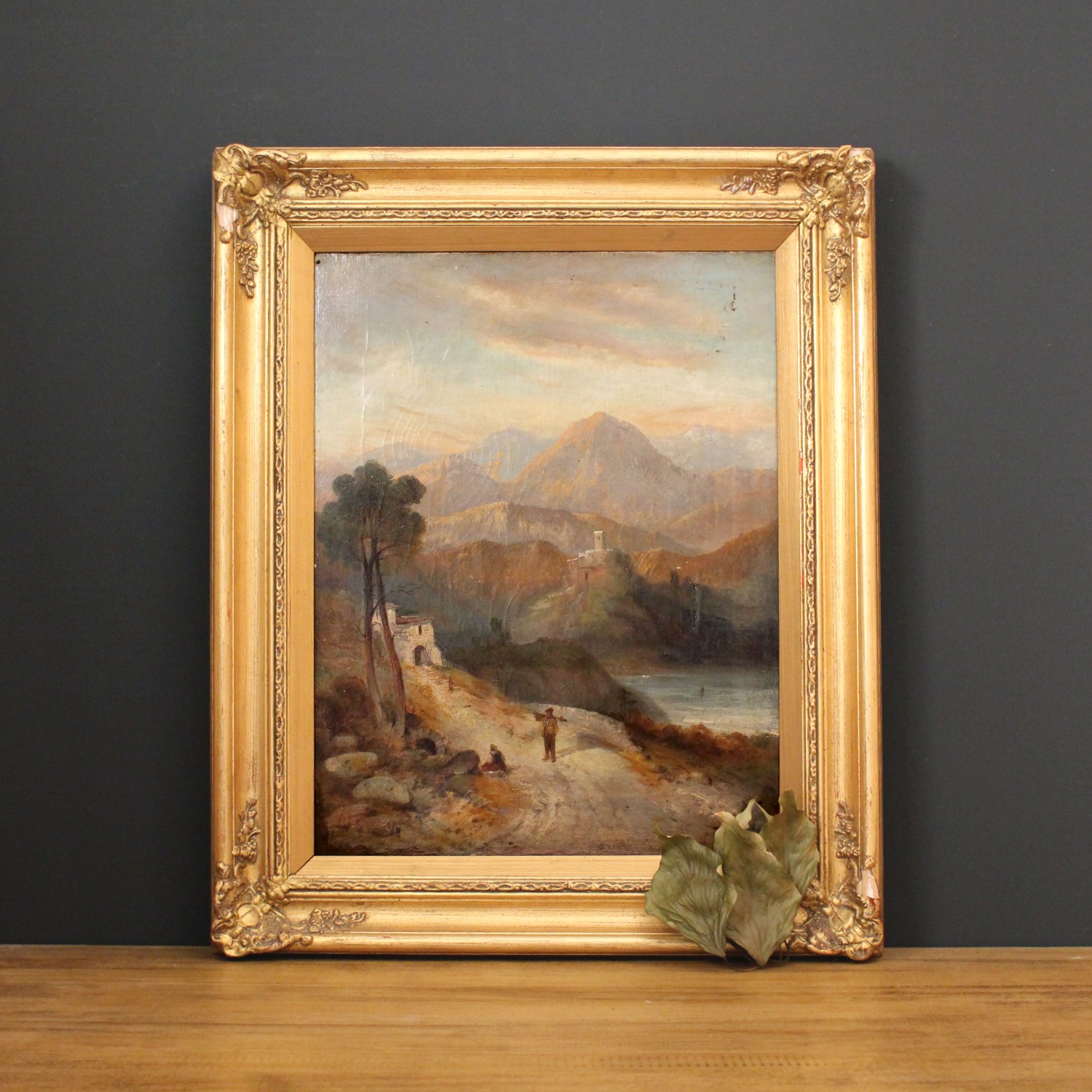 Scandinavian Landscape with Figures, Original Antique Landscape Painting