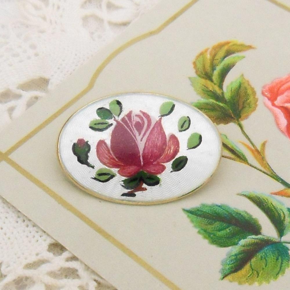 Scandinavian Silver & Enamel Rose Brooch by Ivar T Holth