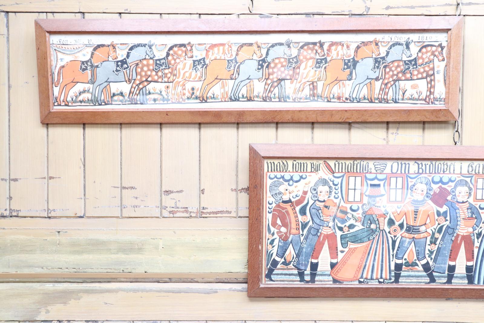 Scandinavian / Swedish Folk Art 'bonad' Three Decorative Framed Prints in Pine Frames