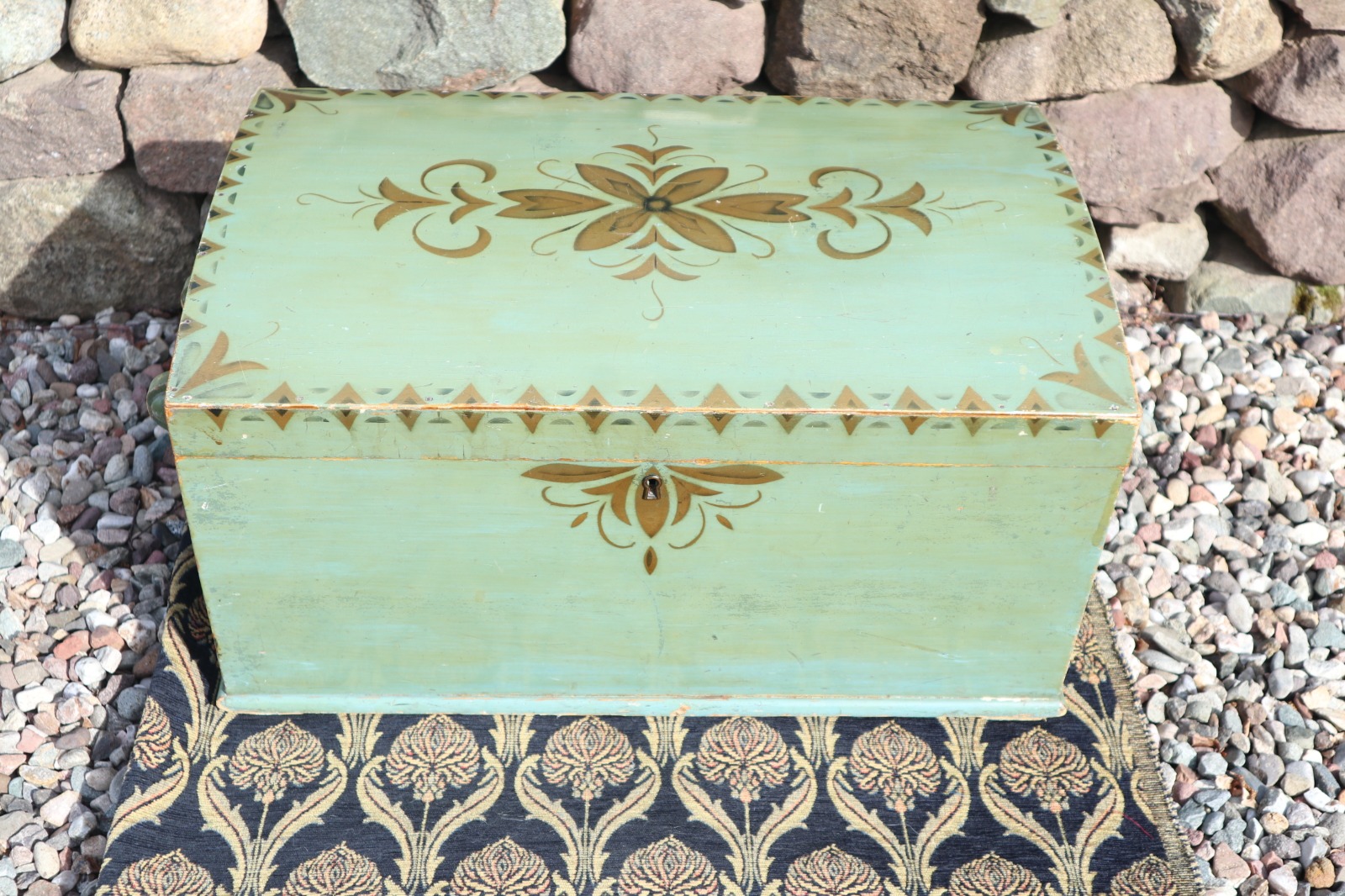 Scandinavian / Swedish 'Folk Art' Marriage / Bridal Chest, Painted Pine with Floral Rosemåling / Kurbits decoration from the Jämtland Region c.1935