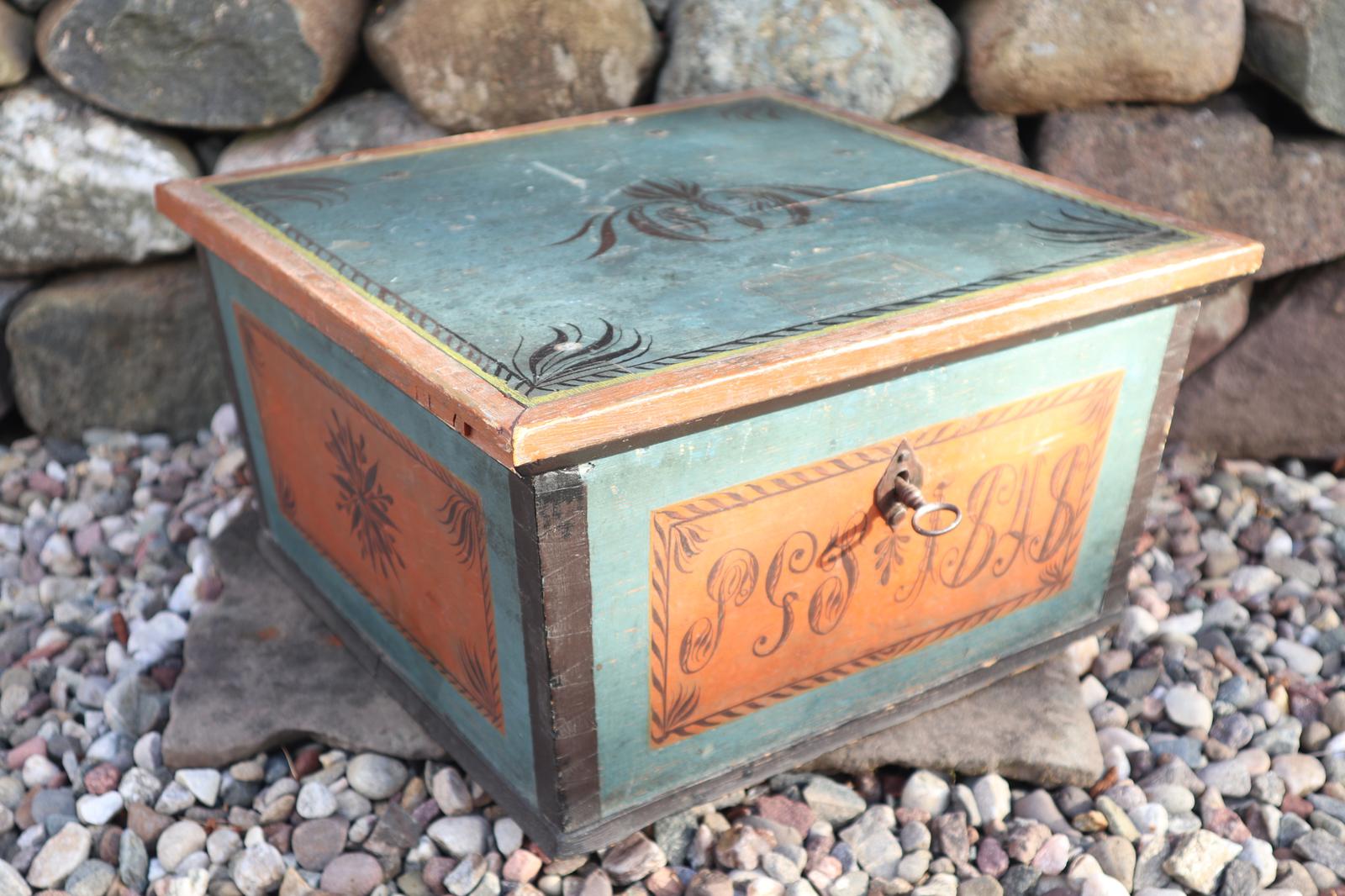 Scandinavian / Swedish 'Folk Art' original blue black painted rosmålning box dated 1848