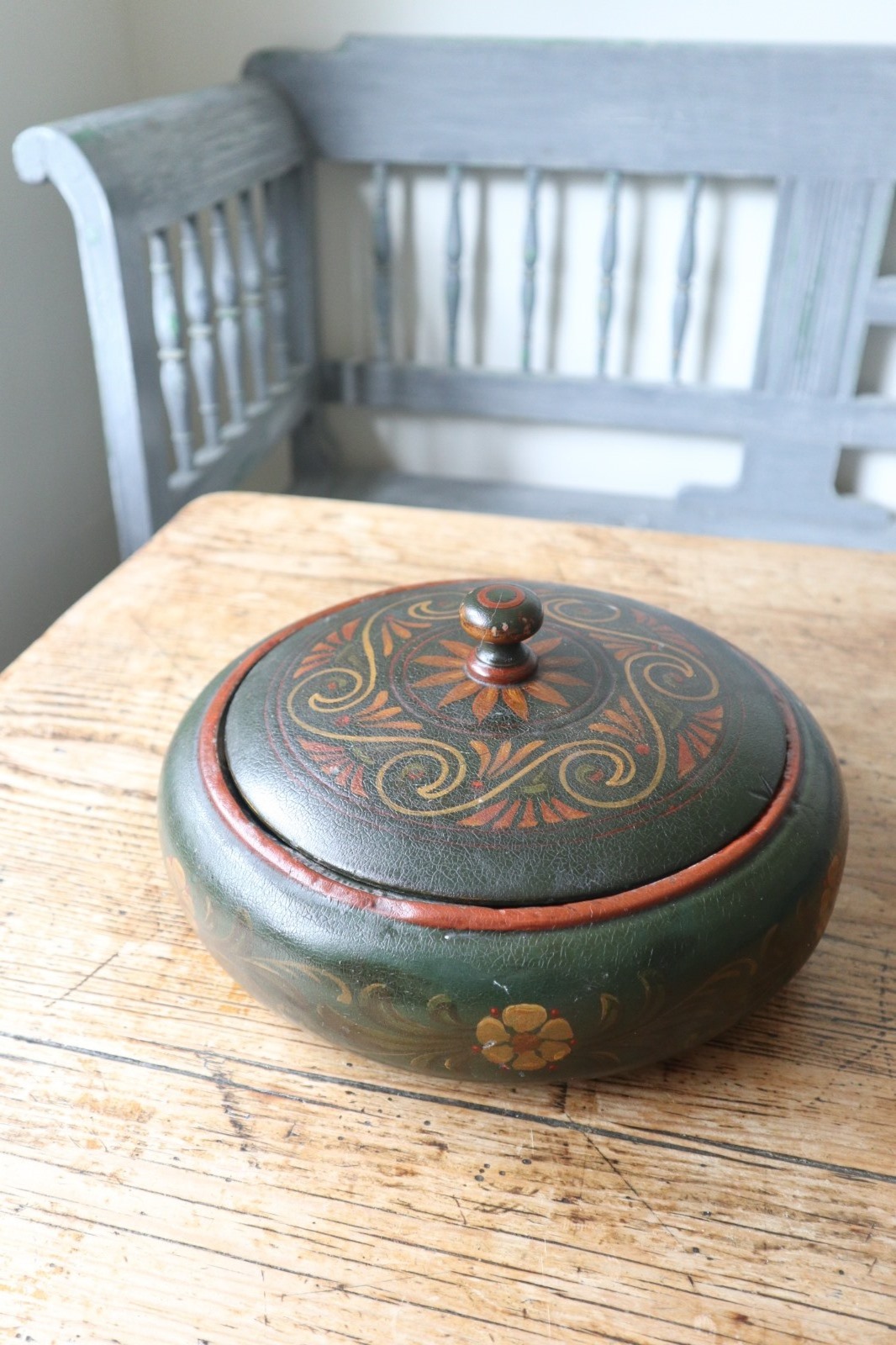 Scandinavian / Swedish 'Folk Art' Rosmålning Painted Large Sliding Lock Lid Wooden Bowl, Late 19th Century